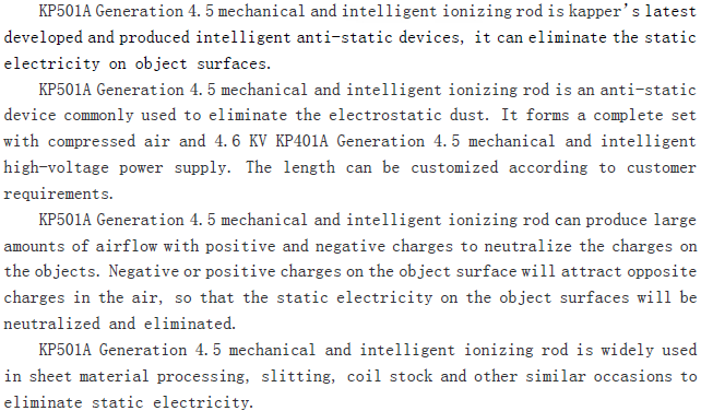 KP501AGeneration 4.5 mechanical and intelligent Ion rod