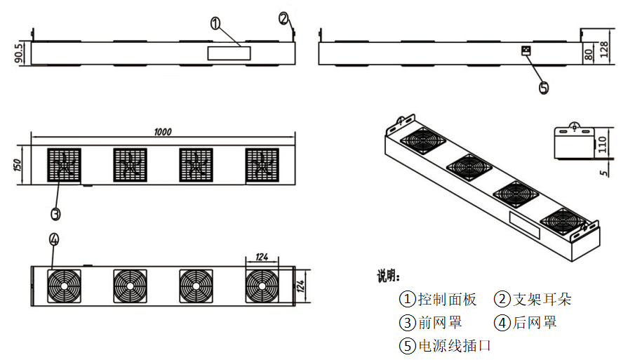 KP1104B 第5 代智能型懸掛式直流四頭離子風機應用于精密電子、醫藥制造、塑膠、光電等行業。