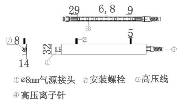 KP505A第4.5代機械與智能型小方棒是一種可選擇連接或不連接壓縮空氣除靜電裝置,未連接壓縮空氣的消除靜電距離建議在 100mm 以內,連接壓縮空氣的消除靜電距離建議在300mm 以內。是一種固定式的除靜電設備,需配上高壓電源供應器才可使用。長度可以按客戶的要求定做。具有安裝簡易、工作穩定、消除靜電速度快的特點。