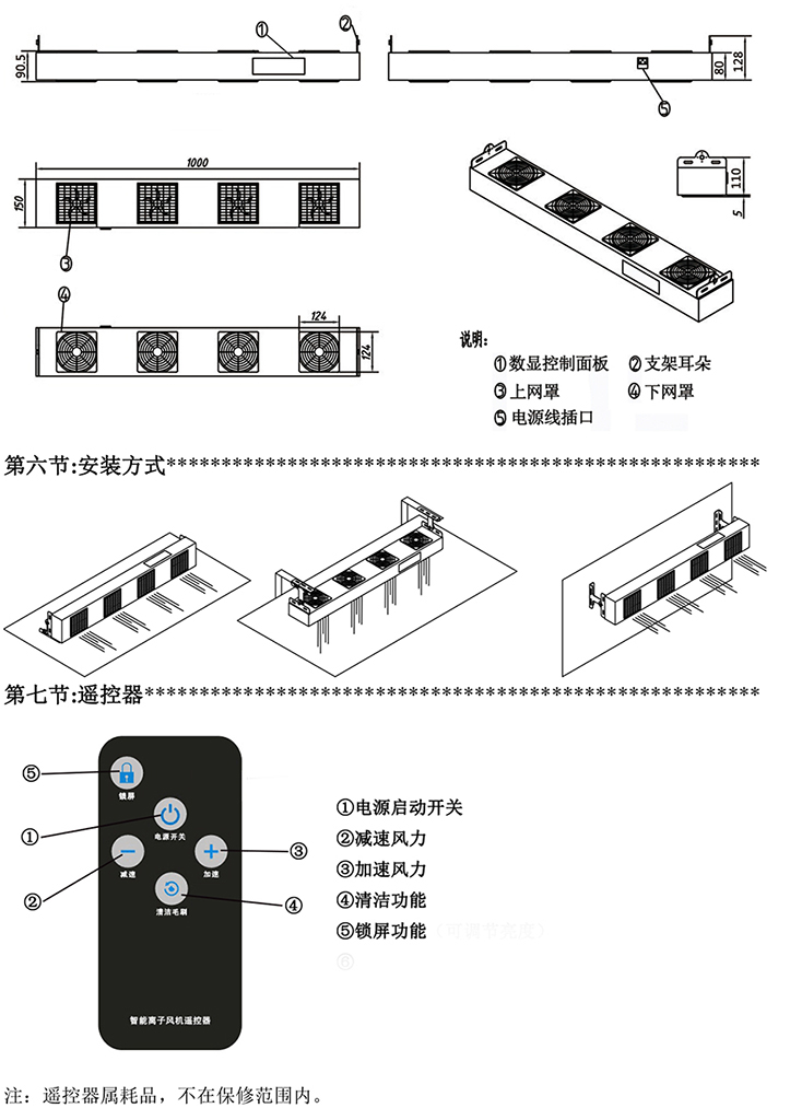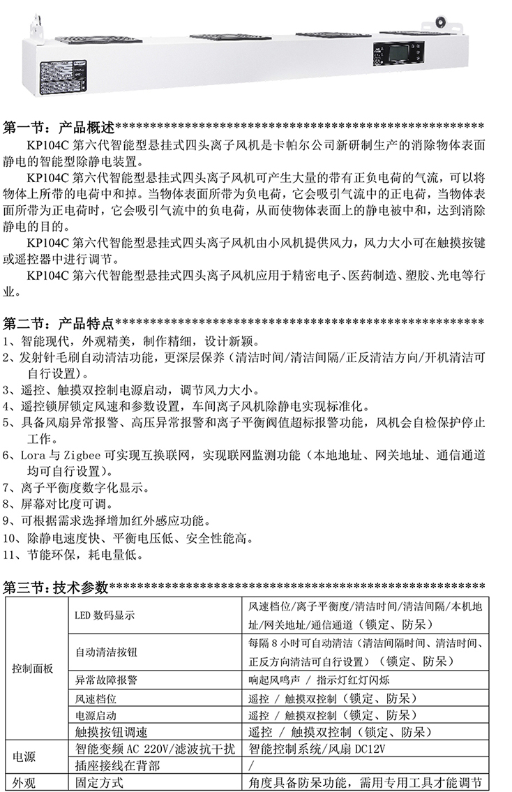 KP104C第六代智能型懸掛式四頭離子風機