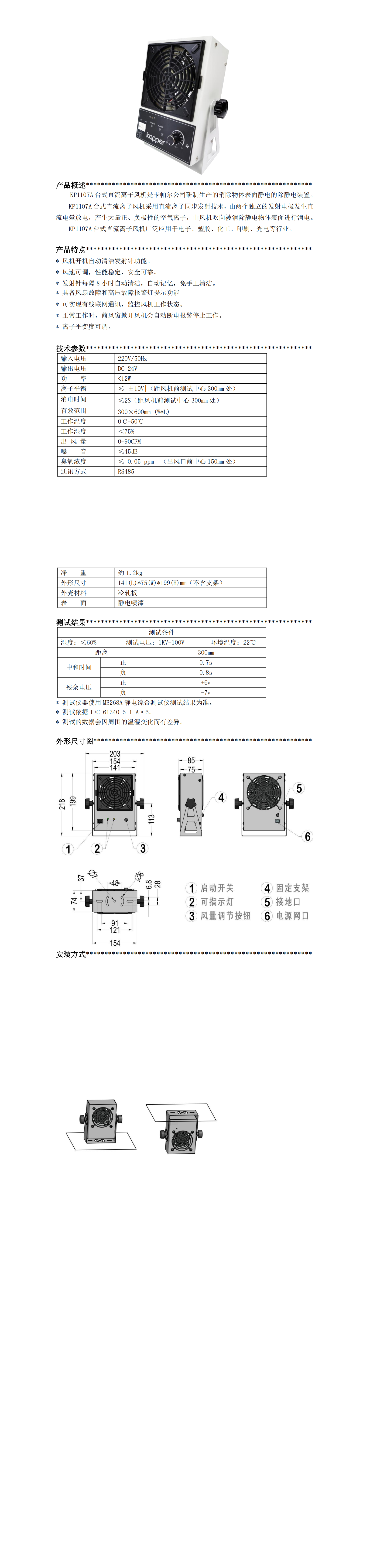 KP1107A 臺式直流離子風機