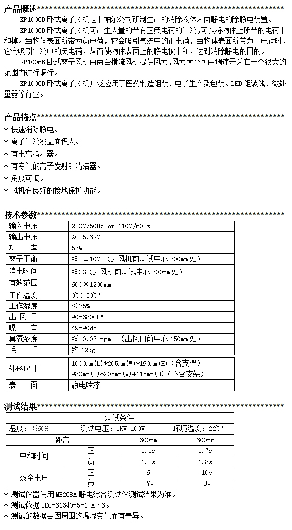 KP1006B第三代臥式離子風機