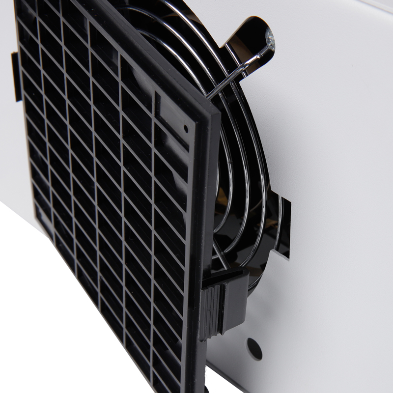 KP102C第六代智能型懸掛式雙頭離子風機由小風機提供風力,風力大小可在觸摸按鍵或遙控器中進行調節。